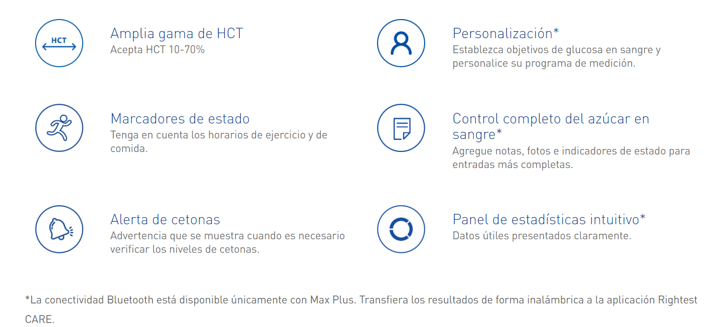 Los sistemas de medición de glucosa Rightest presentan una interfaz elegante e intuitiva que proporciona facilidad en el manejo, lectura e interpretación de los resultados. Además, gracias a desarrollo tecnológico proporciona seguridad en la medición. Los sistemas de medición de glucosa Rightest presentan una amplia gama HCT, codificación automática, marcadores de estado y alertas de cetona para facilitar el manejo y control de cada paciente.